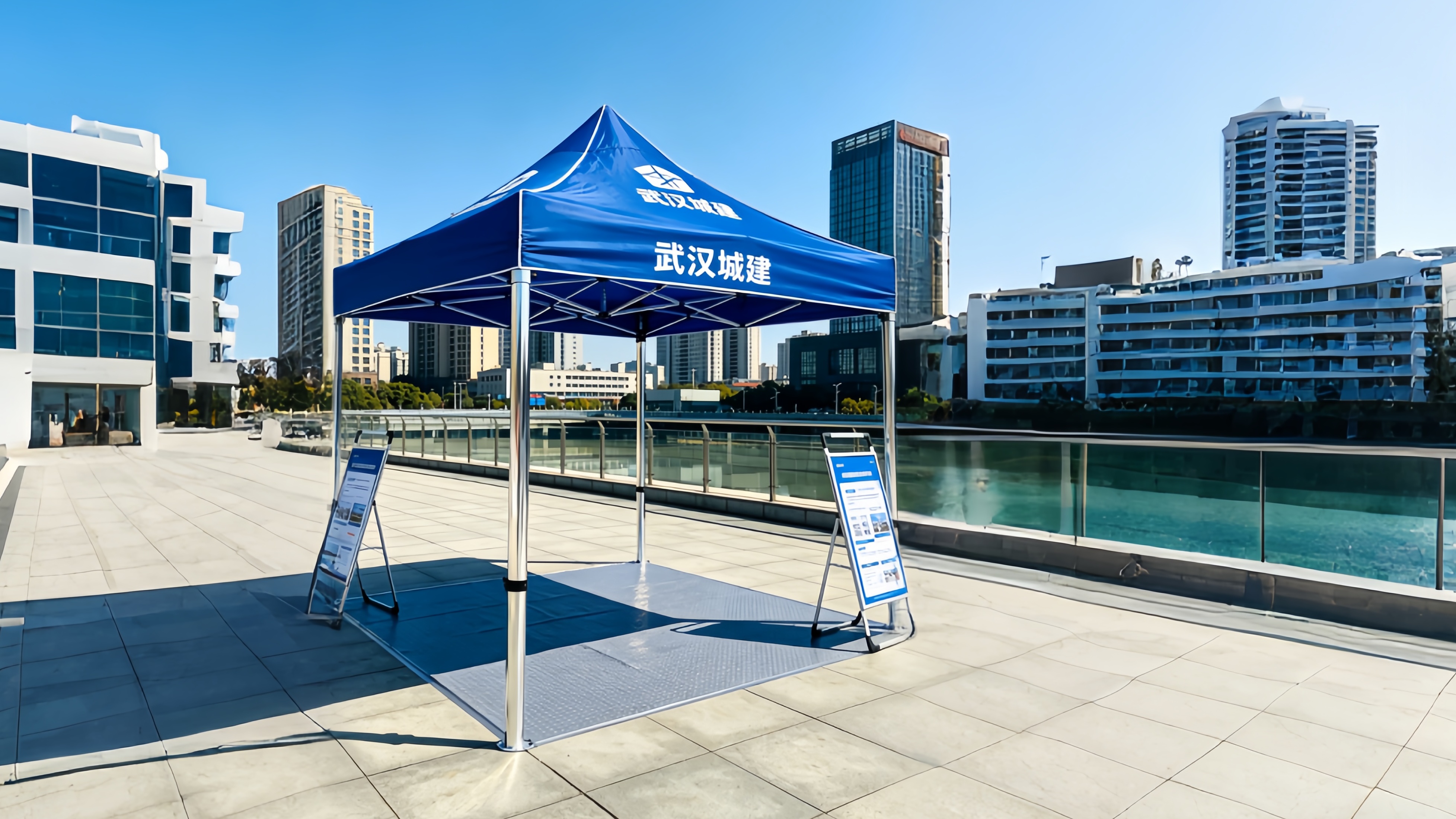 武汉城建集团是武汉本土龙头国企,武汉区域拥有 60 + 在售楼盘,需为旗下全楼盘营销中心、户外展点、开盘活动定制广告帐篷,同时为看房客户、渠道合作方定制高端商务伴手礼广告伞。核心痛点为:不同楼盘需定制专属项目视觉,帐篷需适配武汉户外多风多雨天气,15 天内完成全量交付,且需提供上门安装与售后维护服务。